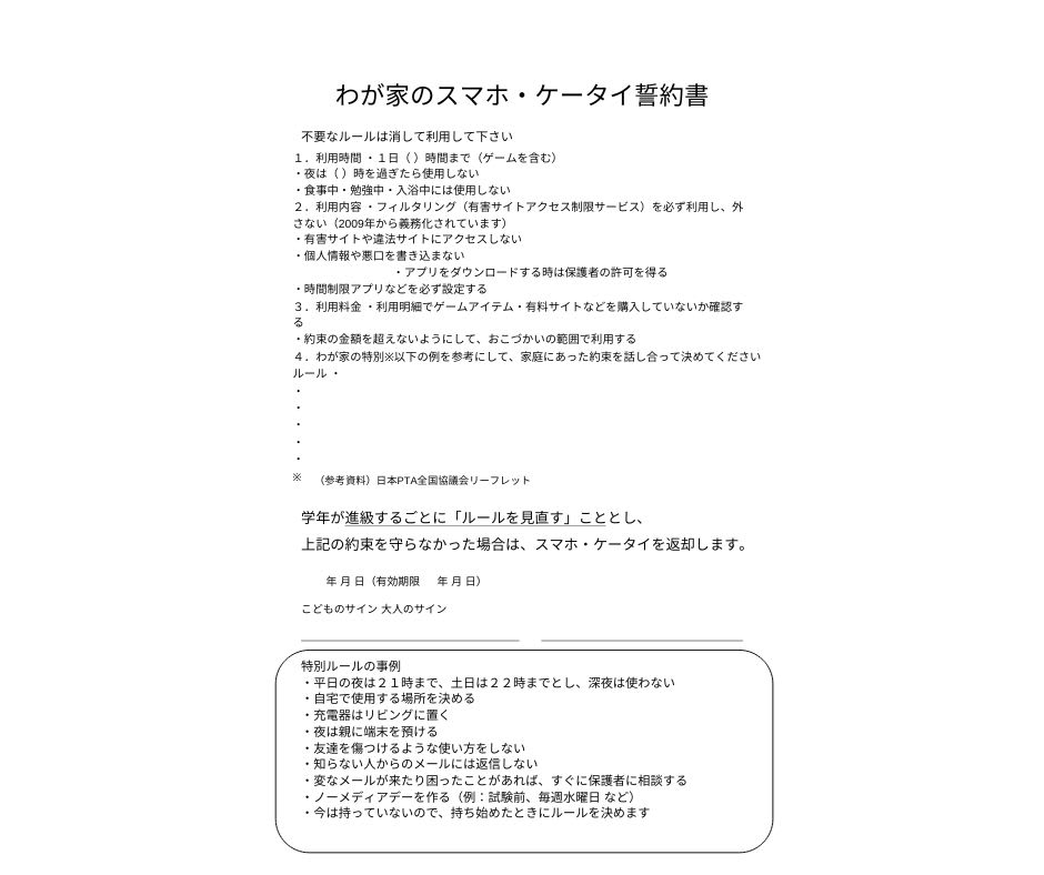 かなりしっかりとした内容になっていますが、「親があなたにスマホを与えている」ということを理解してもらえてきっとお子様も理解してくれるはず!